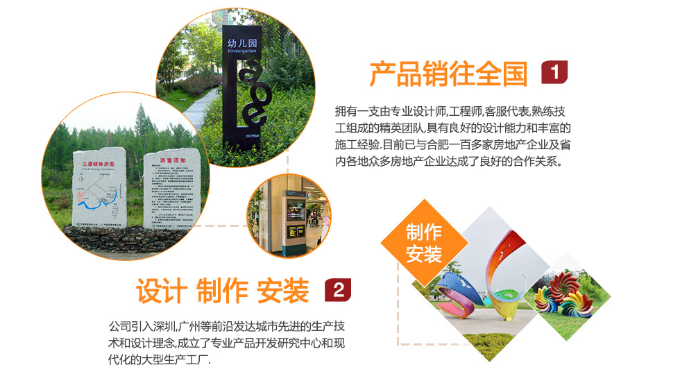 ??合肥匯達標識有限公司成立于2005年3月15日是從事現代標識、雕塑、信報箱、景觀小品等整體規劃,設計,制作及安裝于一體的專業性公司。公司成立了專業的產品技術中心和現代化的大型生產廠房。擁有一支由資深設計師,工程師,客服代表,熟練技工組成的精英團隊,具有一流的設計能力和豐富的施工經驗。目前完成過項目達上千個,已成為了眾多房地產公司 ,建筑建設公司 、園林公司、 設計院所 、裝飾公司、廣告公司的長期供應商。 ??服務過的客戶有萬達 龍湖 綠地 碧桂園 融創 旭輝 祥生 榮盛 高速 寶業等知名地產公司,和順 徽鹽 京東方 安徽名航,中國科學院合肥物質研究院,安徽省水利水電置業發展有限公司等具有國有背景的知名單位和地產公司。完成了安徽合肥濱湖新區綠道標識提升 安徽合肥高新豪生酒店 安徽合肥長江東路憲法主題廣場 安...更多>